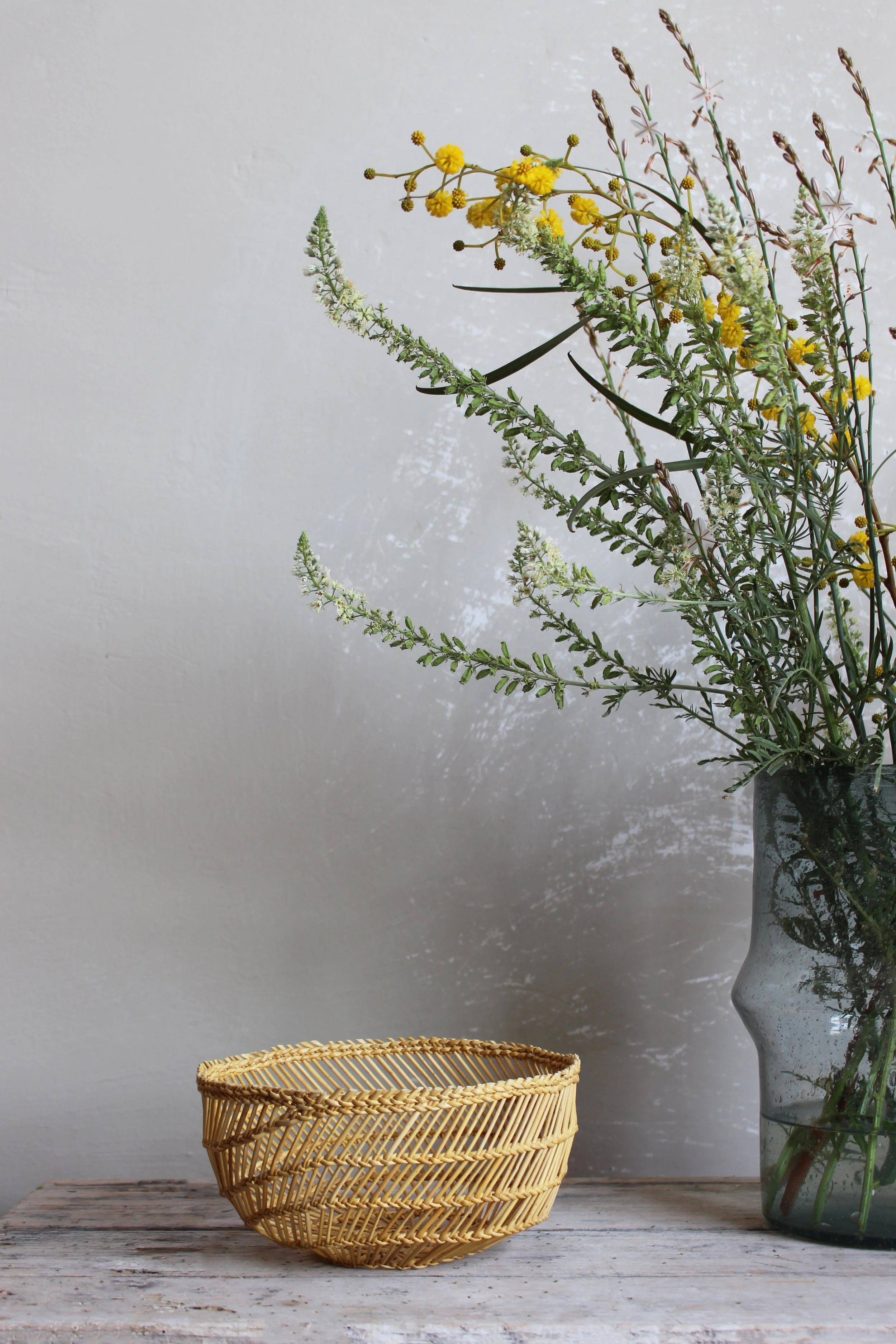 The Mali and Napolis Table Baskets are weaved in Sea Rush fiber in Nabeul. While the MALI basket is straight, the Napolis is curved with a narrower base.